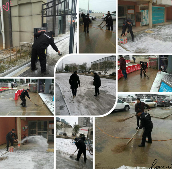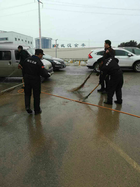 3、美化環(huán)境動動手。積極參與客戶單位、社區(qū)美化環(huán)境中去,用自己的雙手為客戶單位,為美好生活貢獻(xiàn)一份力量。例如,2018年12底,武漢普降大雪,給交通出行帶來不便,公司迅速啟動應(yīng)急預(yù)案,緊急抽調(diào)各駐點(diǎn)單位270余名保安員,對70多家客戶單位區(qū)域路面及人行道進(jìn)行積雪清理,放置防滑墊,保障市民出行安全,受到客戶單位的稱贊。例如,2018年12月底,晟威公司興山公司負(fù)責(zé)人甘元態(tài)對古夫鎮(zhèn)政府大院景觀蓄水池進(jìn)行義務(wù)清理,擼起褲腿跳進(jìn)零下3度的污水中清淤三個多小時,以實(shí)際行動傳遞正能量,在平凡的崗位上做出不平凡的貢獻(xiàn),受到客戶單位好評。例如,2018年4月,武漢突降大雨,公司駐理工光科項(xiàng)目部的保安員,堅(jiān)持雨中執(zhí)勤站崗,連續(xù)幾小時不停的除泥漿沖洗馬路,渾身上下都濕透了,為了過往的人和車輛能走的安全放心,他們彎下了自己的腰,手里握著的是晟威人的精神,而這背上扛的是滿滿的責(zé)任心。例如,公司駐奇宏光電項(xiàng)目部的保安員,在項(xiàng)目食堂停業(yè)時期依然堅(jiān)守崗位,每天靠吃泡面充饑,依然兢兢業(yè)業(yè),因?yàn)樗麄兠總€人都知道自己的職業(yè)是安全、放心的代名詞,為了這份信任,為了這份使命感他們都很拼。黨支部、晟威公司還有許許多多諸如此類的黨員和保安員,每天都在演繹著他們的故事,故事平凡而又不平凡,深深打動我們的心。