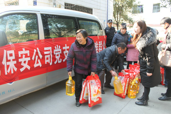 2、誰有困難幫幫手。公司在發(fā)展中注重經(jīng)濟(jì)效益的同時,更加注重社會效益,積極踐行黨的群眾路線。例如,興山縣榛子鄉(xiāng)貧困戶楊大喜現(xiàn)年50歲,因貧窮至今單身,與89歲的駝背老母一起生活,廚房連灶臺都沒有,公司支部書記在走訪中發(fā)現(xiàn)了這一情況,當(dāng)場支持資金2萬元,用于發(fā)展煙葉產(chǎn)業(yè),幫助其脫貧致富。例如,興山縣龍珠社區(qū)“年年紅專業(yè)合作社”發(fā)展柑橘產(chǎn)業(yè)缺資金,公司捐贈一批肥料物資,支持貧困戶發(fā)展柑橘產(chǎn)業(yè),幫助在武漢市場尋找銷售渠道。例如,興山籍在漢企業(yè)家胡兵,初次參加黨支部黨團(tuán)活動會后,專門找到組織,通過黨支部橋梁對家鄉(xiāng)興山縣開展扶貧助殘,并捐贈10萬元物資用于扶貧助殘公益活動。例如,黨支部心系興山在漢打拼的父老鄉(xiāng)親,結(jié)合春節(jié)“一票難求”的現(xiàn)狀,節(jié)前組織大巴車免費(fèi)送他們回家,解決他們“回家難、難回家”的問題。例如,2018年11月,公司駐武漢理工光科項(xiàng)目部保安隊(duì)長高琦在執(zhí)勤期間拾到一個錢包,包里有身份證、銀行卡、現(xiàn)金等貴重物品,經(jīng)過多方核實(shí)尋,將錢包完好的歸還給了失主。例如,公司大江鑫港龍城業(yè)主郭先生由于個人疏忽,將手提電腦、手機(jī)及其他貴重物品遺失在車內(nèi),車窗沒有關(guān)閉,公司保安員余博在夜間巡查時發(fā)現(xiàn),第一時間聯(lián)系業(yè)主,將物品如數(shù)歸,業(yè)主制作了一面“小區(qū)好衛(wèi)士,業(yè)主貼心人”的錦旗送到公司。例如,2018年10月,奇宏光電項(xiàng)目保安員孫洪在巡邏執(zhí)勤時接到甲方生產(chǎn)車間主管的電話,得知車間有一男子手持刀具鬧事,眼見該男子情緒失控,孫洪和其他保安員奮不顧身上前奪刀將該男子制服,隨后交公安民警處置,英勇無畏的精神得到客戶單位肯定。例如,支部成立以來,為響應(yīng)興山縣“動員全社會參與脫貧攻堅(jiān),形成攻堅(jiān)合力”的號召,晟威興山分公司給興山慈善協(xié)會、孝心養(yǎng)老基金等累計捐贈6萬元,用實(shí)際行動扶貧濟(jì)困,幫助困難群眾改善生活條件。