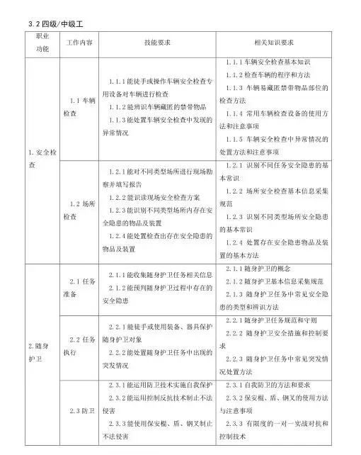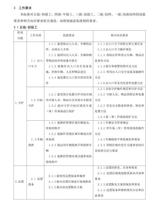 保安員國家職業(yè)技能標(biāo)準(zhǔn)目錄