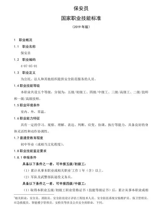 【重磅消息】新版保安員國家職業(yè)技能標(biāo)準(zhǔn)頒布