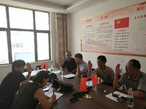 隨后,新當(dāng)選的黨支部全體同志在黨旗下莊嚴(yán)宣誓,重溫入黨誓詞,并合影留念。