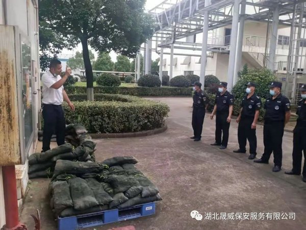 湖北晟威保安武漢公司滕倉(cāng)烽火項(xiàng)目點(diǎn)組織防汛應(yīng)急演練活動(dòng)