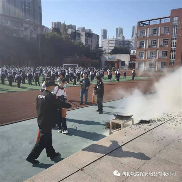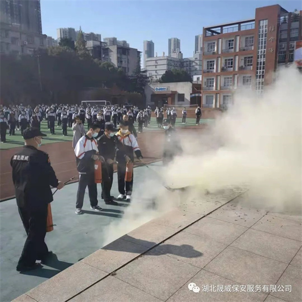 湖北晟威保安公司聯(lián)合洪山區(qū)服務(wù)學(xué)校開(kāi)展反恐消防演練