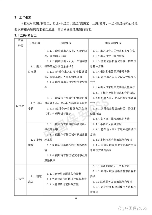 《保安員國家職業(yè)技能標準》